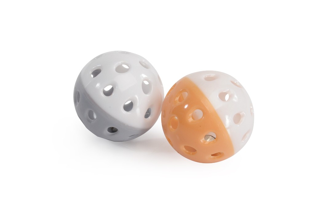 סט משחק מצחיק לחתולים המכיל 2 כדורים עם פעמון.